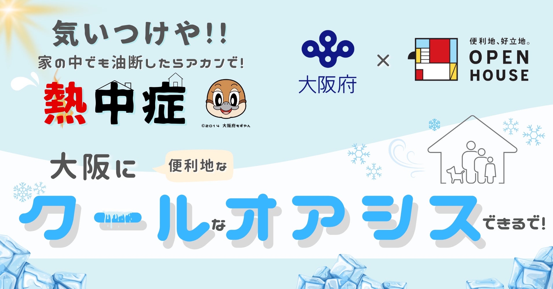 株式会社オープンハウスグループ(本社 東京都千代田区、代表取締役社長 荒井正昭)のグループ会社である株式会社オープンハウスの関西支社は、大阪府と連携し、家の中での熱中症対策についての注意喚起に加え、外出中の地域の皆さまが少しでも暑さをしのぎ、快適に過ごしていただくために「おおさかクールオアシスプロジェクト」に賛同し、空調が効いた店内などを無料でご利用いただけるよう提供します。