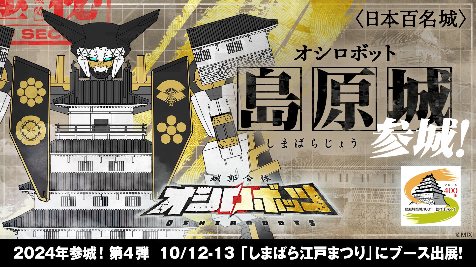 株式会社MIXI(東京都渋谷区、代表取締役社長 上級執行役員 CEO:木村 弘毅)は、MIXI_ANIMEオリジナルコンテンツ『城郭合体オシロボッツ』のオシロボット「島原城」を本日公開しました。2024年10月12日(土)〜13日(日)に開催される「しまばら江戸まつり」へ出展し、物販やノベルティ配布を行います。