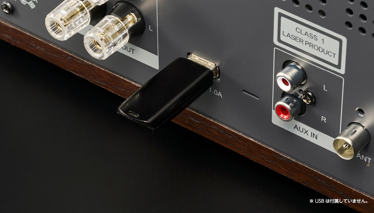 また、USBメモリーに収録されたMP3データも再生可能で外部機器への給電もできます。(5V/1A)