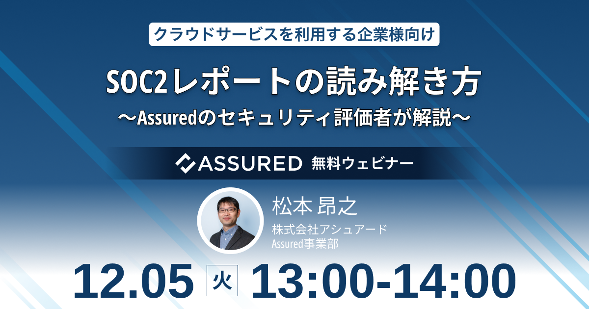 そこでAssuredは、SOC2レポートの読み解き方について、Assuredのセキュリティ評価者による解説セミナーをオンラインで開催いたします。