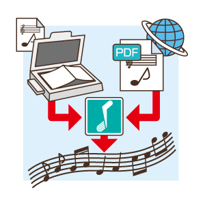 印刷された楽譜をスキャナで読み取るか、スマホやデジカメで撮影して、再生できる楽譜(電子楽譜)にできます。