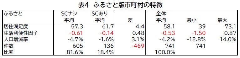 - 大型ショッピングセンターと居住満足度・生活利便性因子得点・人口増減率(ふるさと)