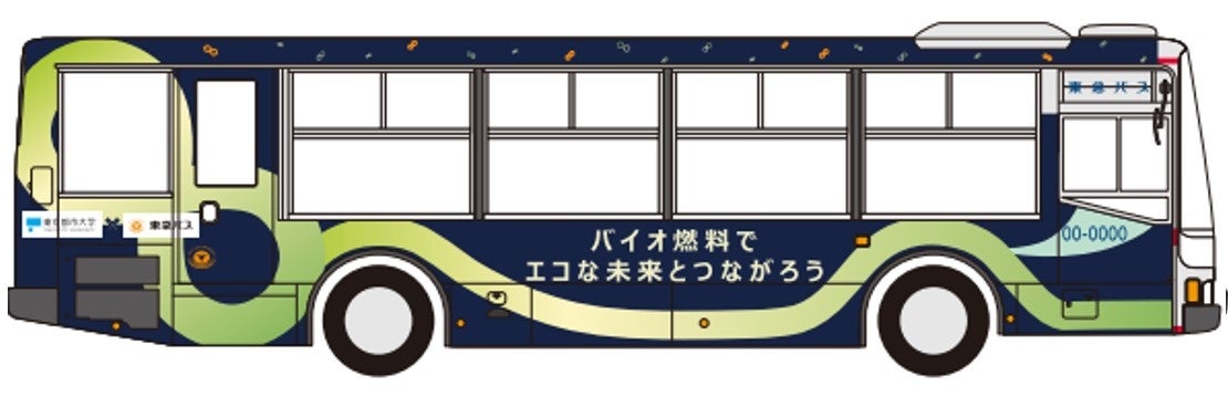 なお、バイオ燃料を活用する路線バスのうち2両に東京都市大学の学生がデザインしたラッピングが施されています(5月14日運行開始は1両のみ)。