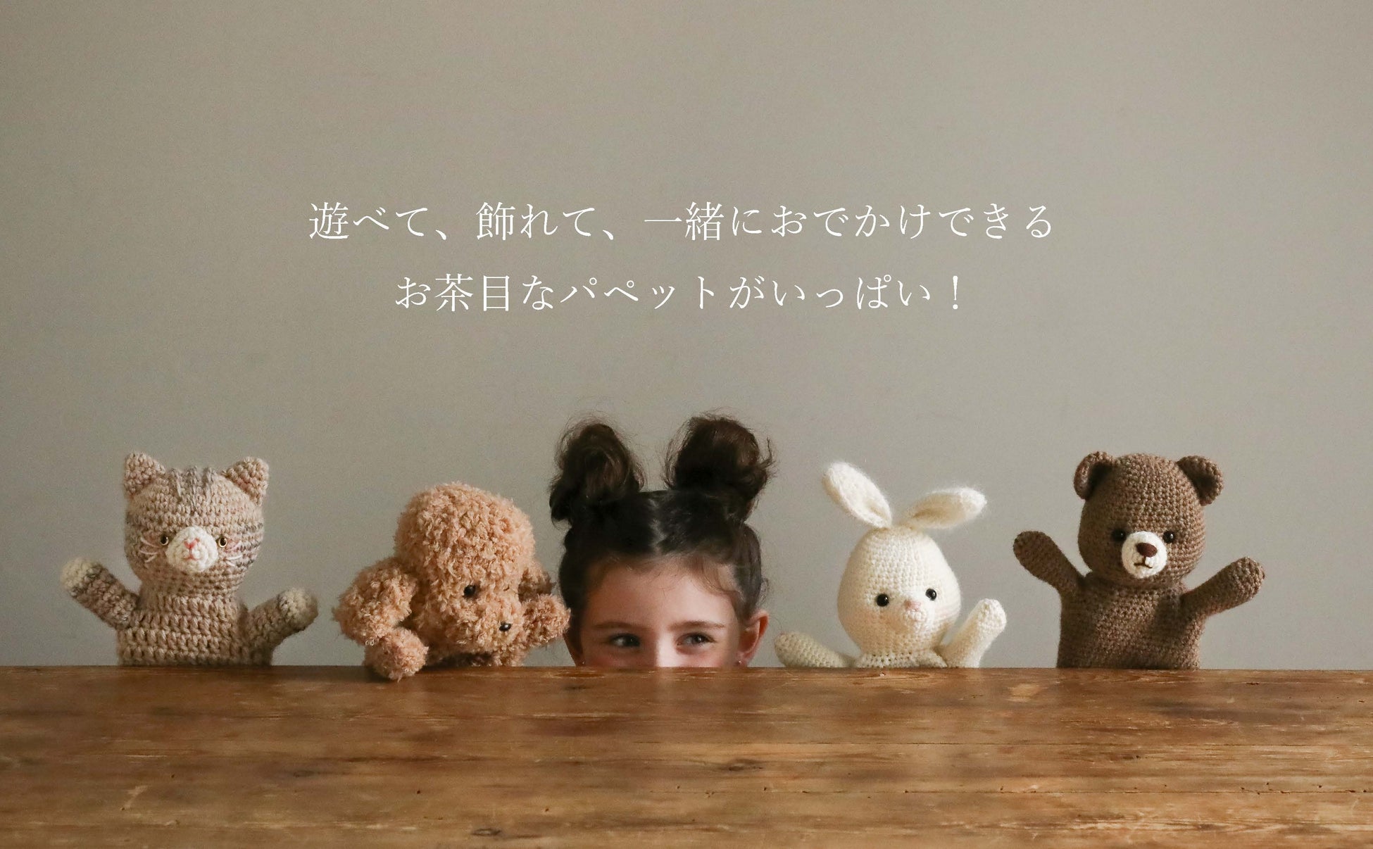 編んで、遊んで、撮って、飾って……楽しみ方はあなた次第です。愛くるしくてチャーミングなパペットが、いつも思い出のそばにありますように。