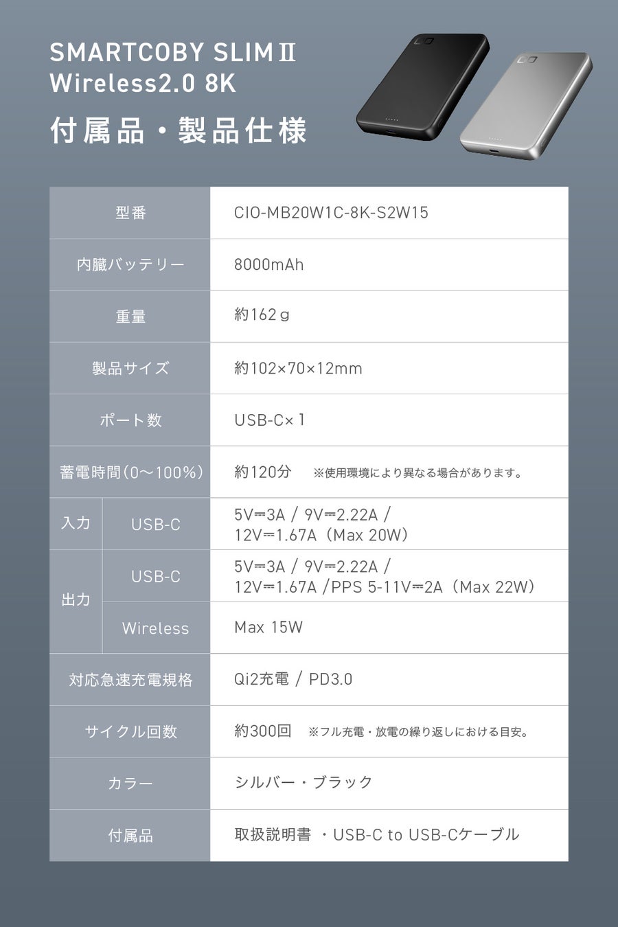 【株式会社CIO】新製品「SMARTCOBY SLIMⅡ Wireless 2.0 8K」販売開始 Qi2ワイヤレス充電&スマホ約1回分の充電量