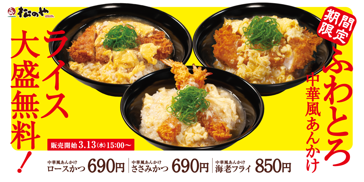 【松のや】かつを包みこむ、ふわふわ玉子と出汁のあんかけ「中華風あんかけ」新発売