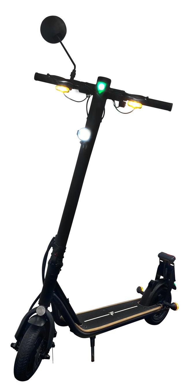 2023年7月1日より施行された「特定小型原動機付自転車」区分の電動キックボードの中でもMEISTER.Fの電動キックボードは、後方確認に便利なバックミラーの搭載をはじめ、一般原動機付自転車の基準を満たした警音器(クラクション)、前照灯(ヘッドライト)を搭載しており、より快適で安全な設計。