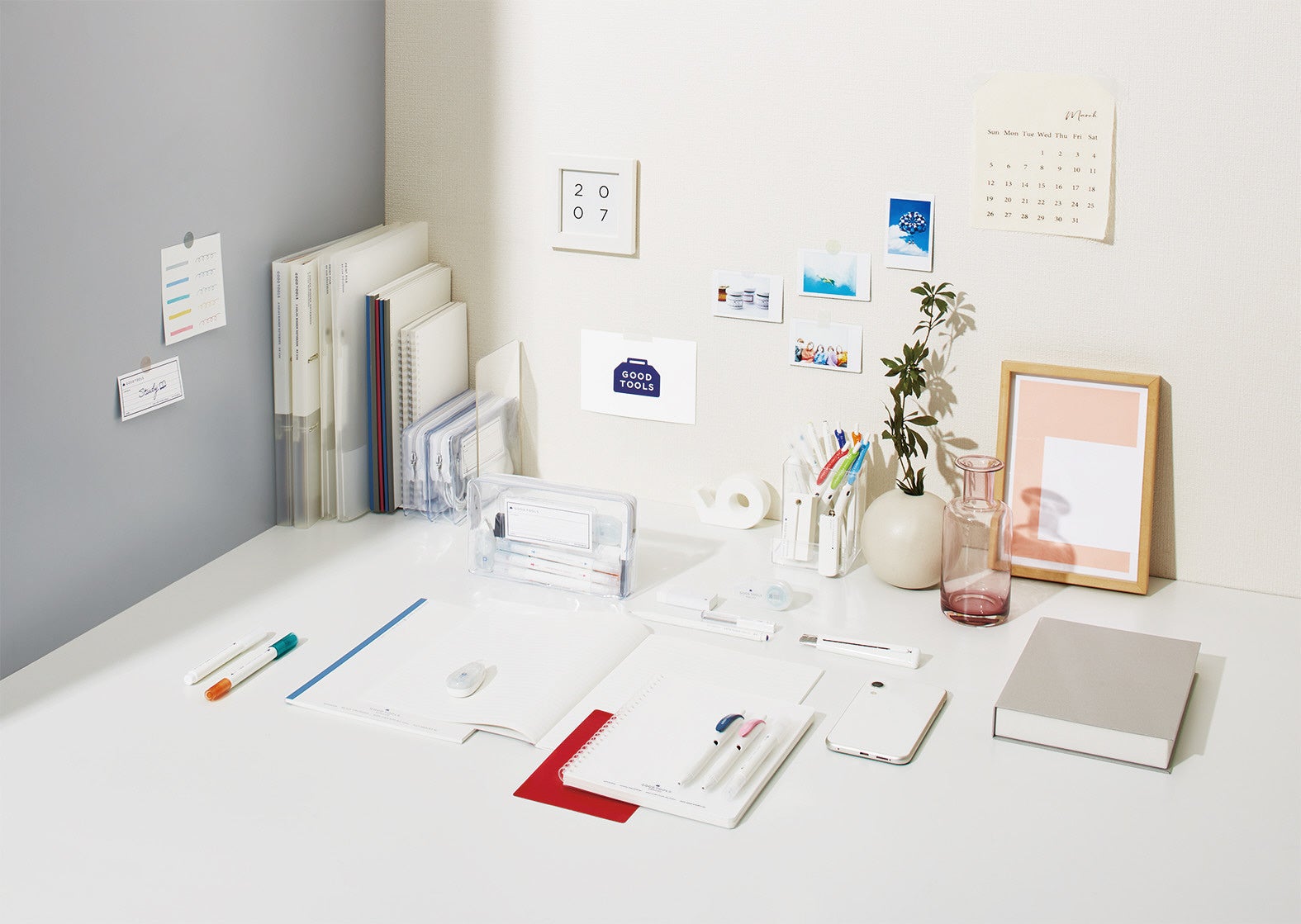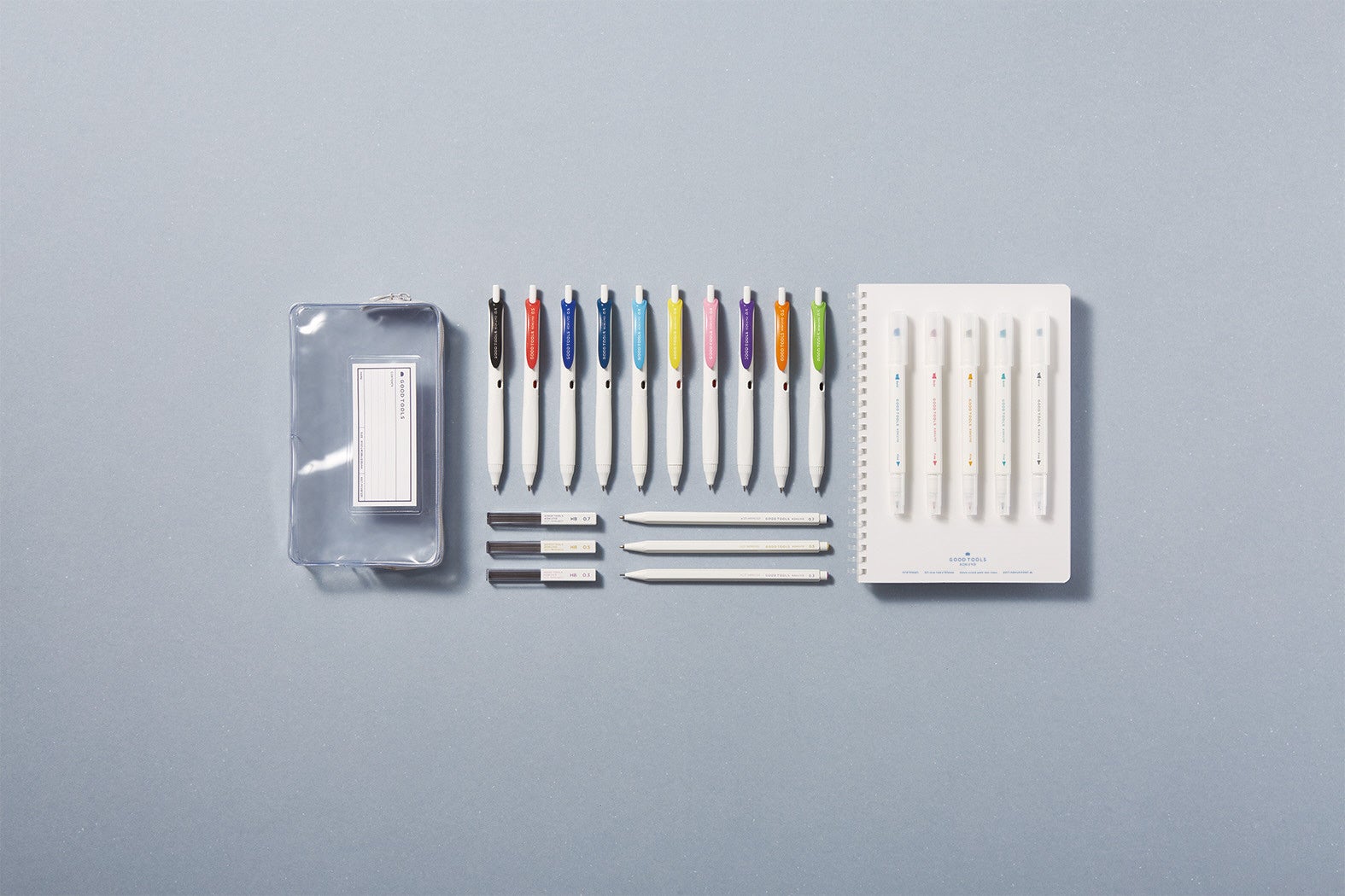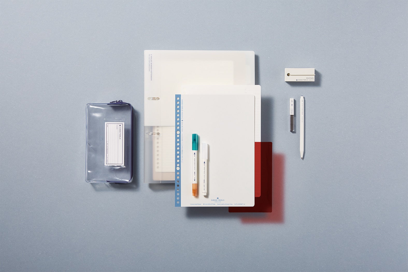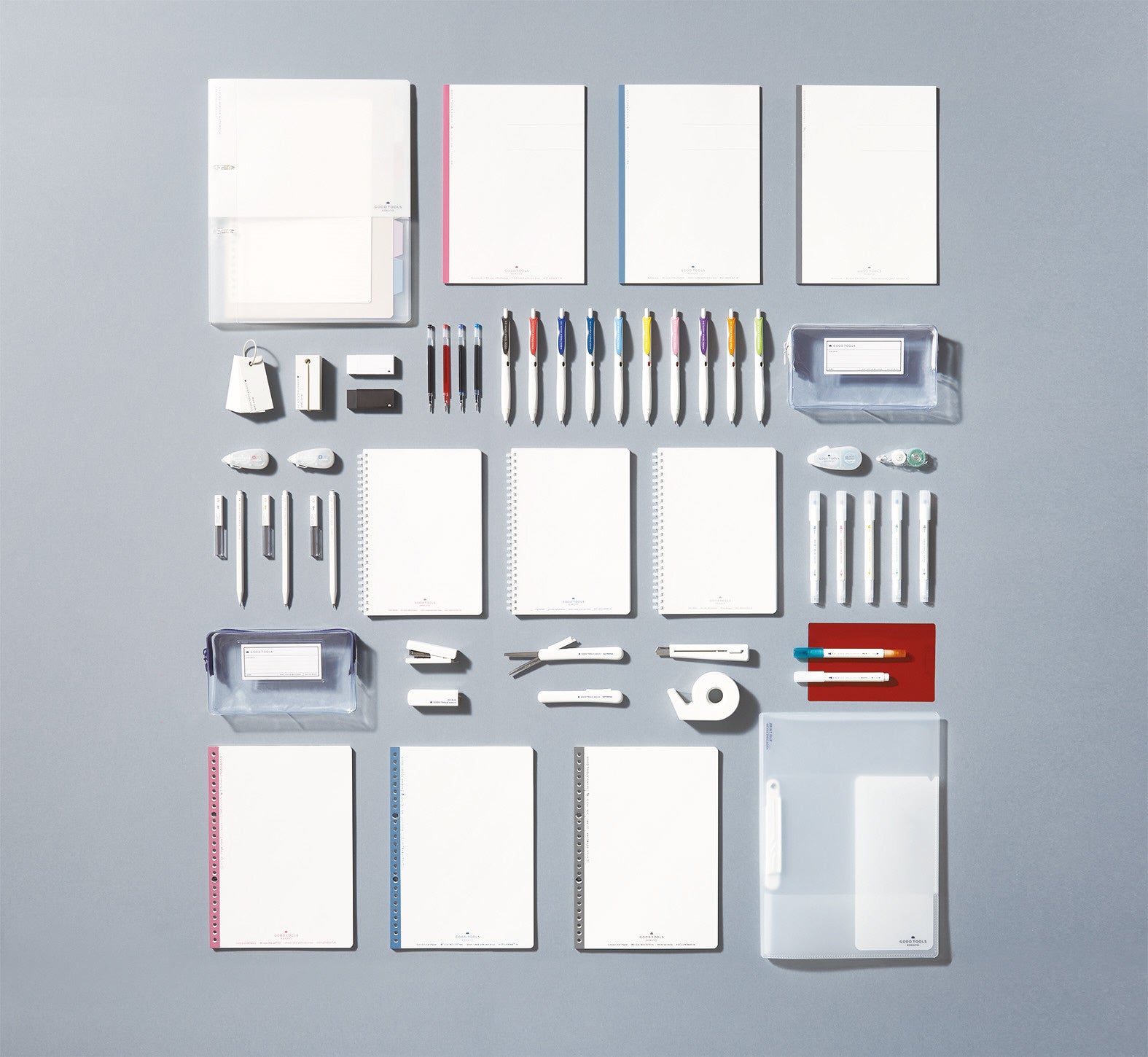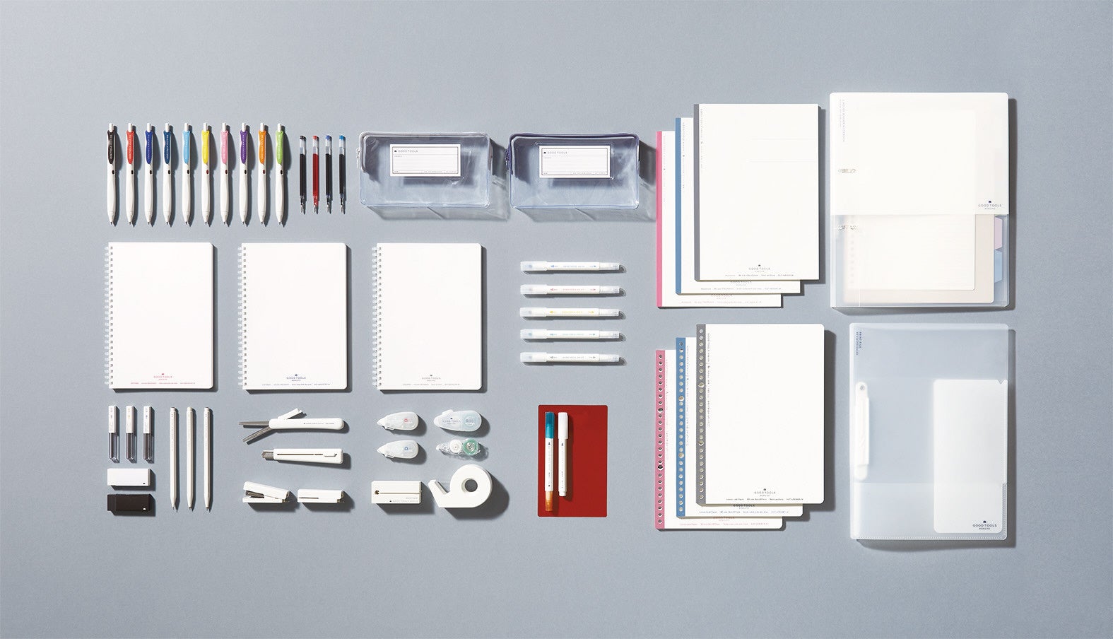 そこで今回、ノート、ファイル、筆記具など各カテゴリの中から、スタンダードで機能性の高いアイテムを選りすぐり、「GOOD TOOLS」シリーズとして発売します。「ずっと使い続けたい」と思えるような、機能性も品質も良いものを、迷わず選べる全50品番のラインアップです。また、白を基調としたシンプルなデザインにより、「持ち物は統一感を持ってそろえたい」というお客様のニーズにもお応えます。