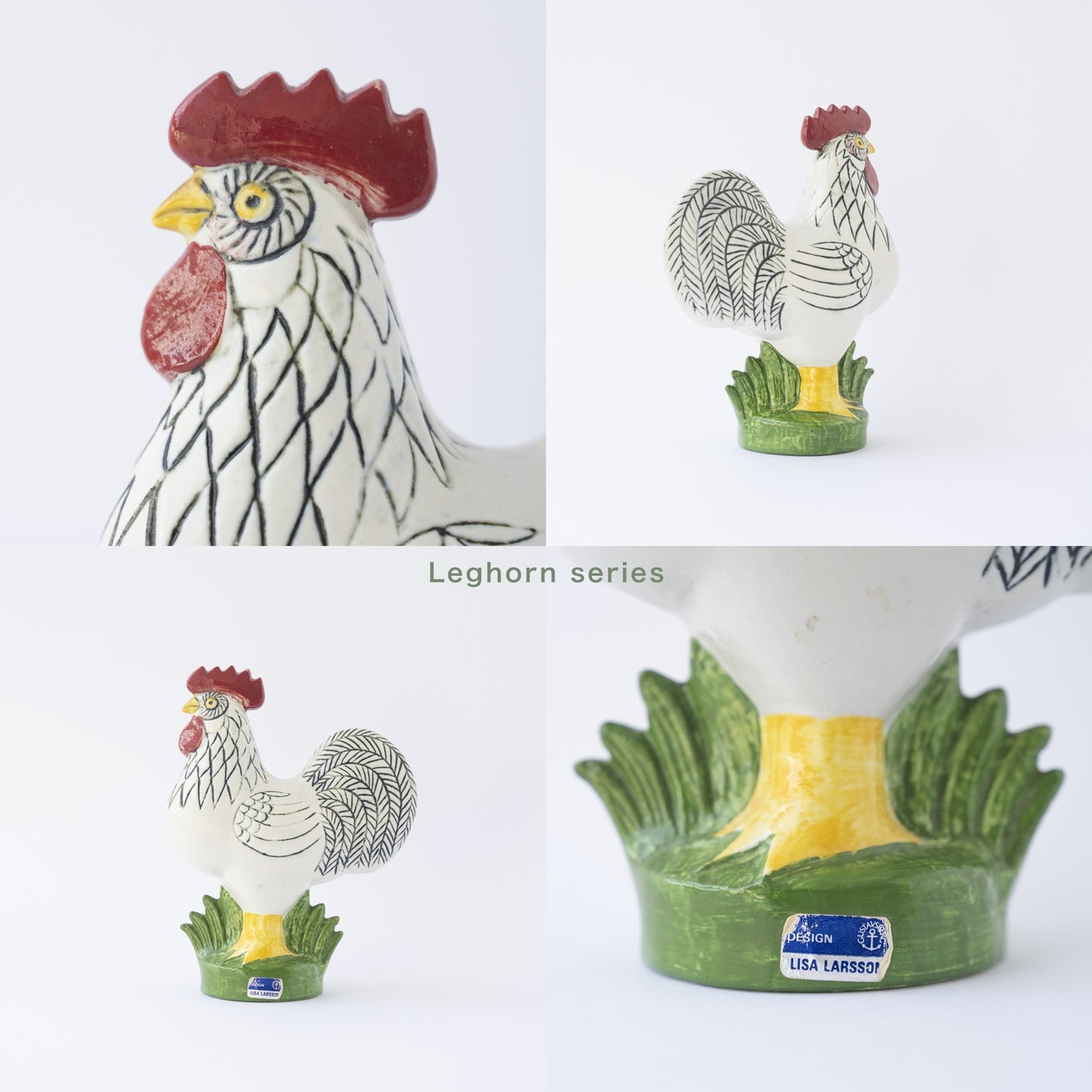 1968年にリサ・ラーソンがグスタフスベリ社のためにデザインした「Leghorn」シリーズの雄鶏です。マットな質感が特徴的な白炻器(white stoneware)で作られており、堂々とした姿が表現されています。