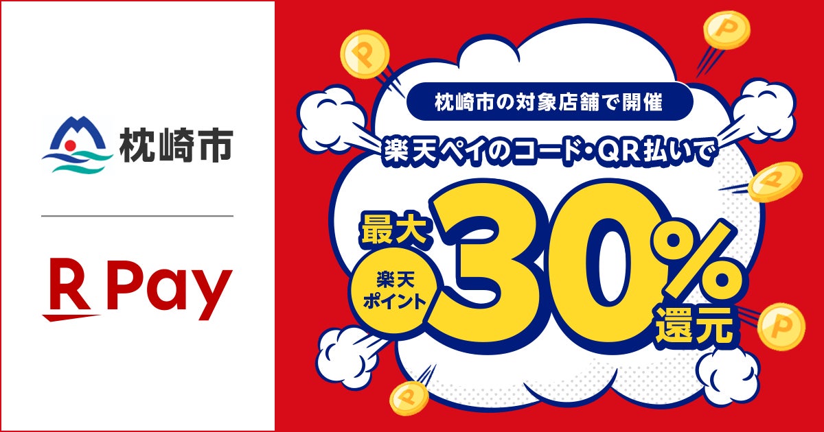 楽天ペイメント株式会社(以下「楽天ペイメント」)は、運営するキャッシュレス決済サービス「楽天ペイ」において、鹿児島県枕崎市が2025年2月1日(土)から2月28日(金)まで実施する「枕崎市キャッシュレス キャンペーン第4弾」に参加することをお知らせします。