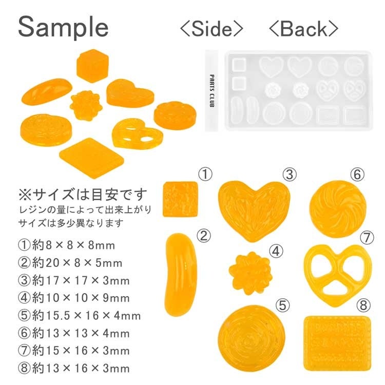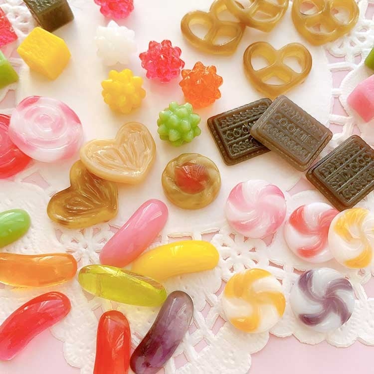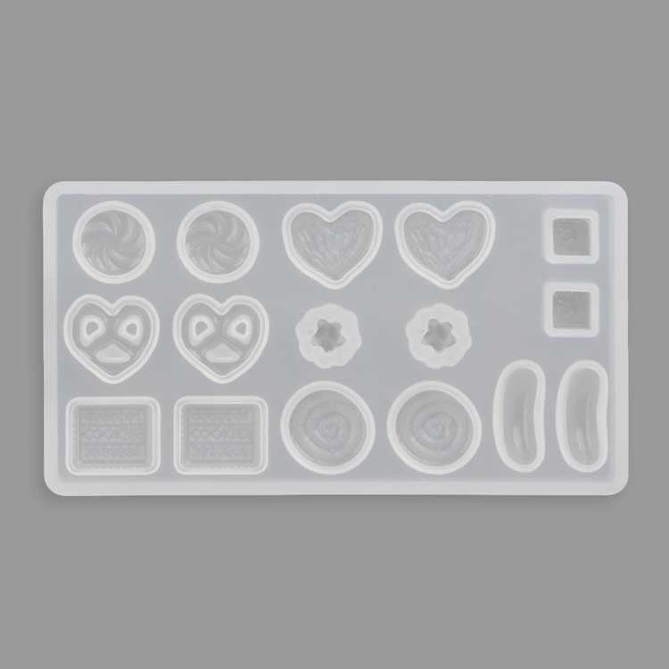 今回のスイーツアソートシリコンレジン型は馴染みのあるビスケット、プレッツェル、グミ、キャンディ、金平糖が作れるので遊び心あふれる、楽しいスイーツアクセサリー作りにぜひ挑戦してみてください。