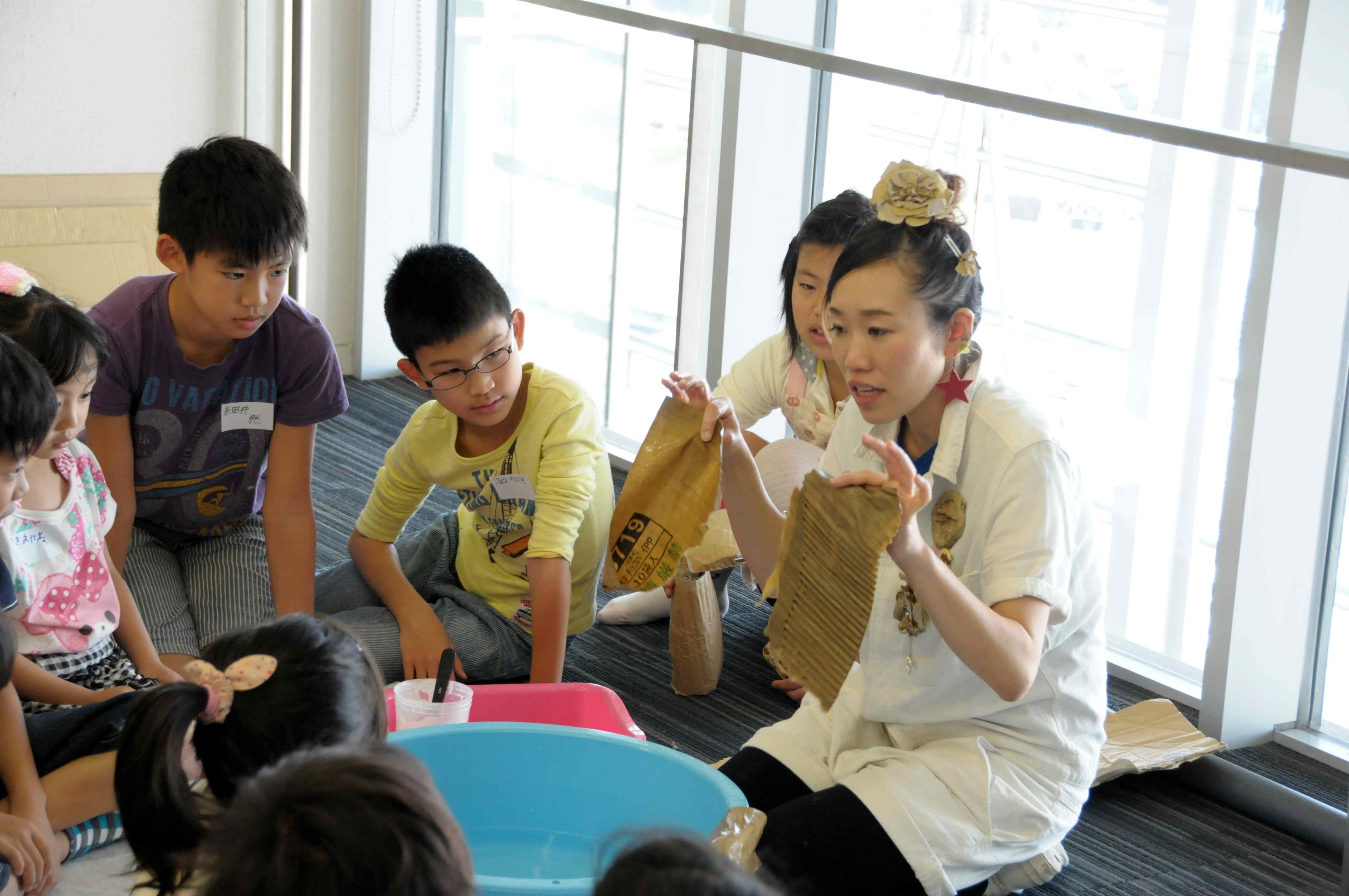 ダンボールの強度と柔軟性を生かした独自の技法を美術教育の現場でも広めている。
