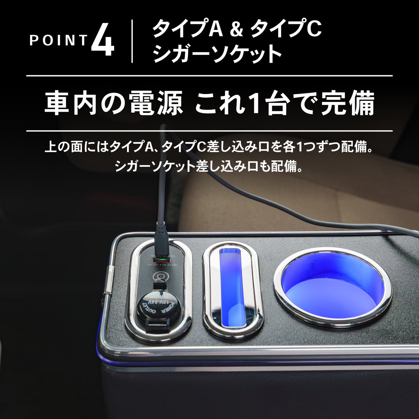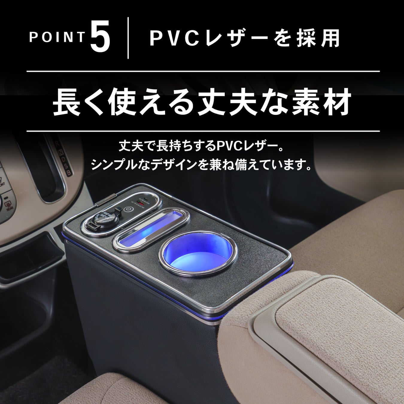 【新発売】ムーヴキャンバス専用 LEDアームレスト/コンソールボックス。まるで純正のようなフィット感。大容量収納で、快適な車内空間を提供。スッキリ快適な充電体験でデザイン性、使いやすさを実現!