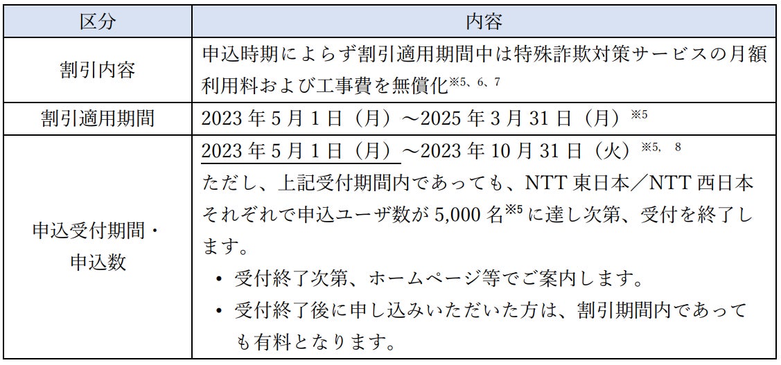 特殊詐欺対策サービスの月額利用料および工事費を、申込受付期間・申込数を限定して※5一定期間無料とします。