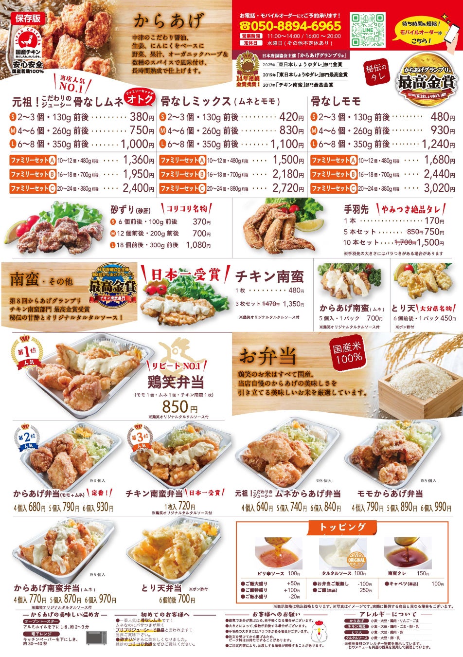 からあげ専門店 鶏笑は国内外に店舗展開中のからあげテイクアウト専⾨店です。