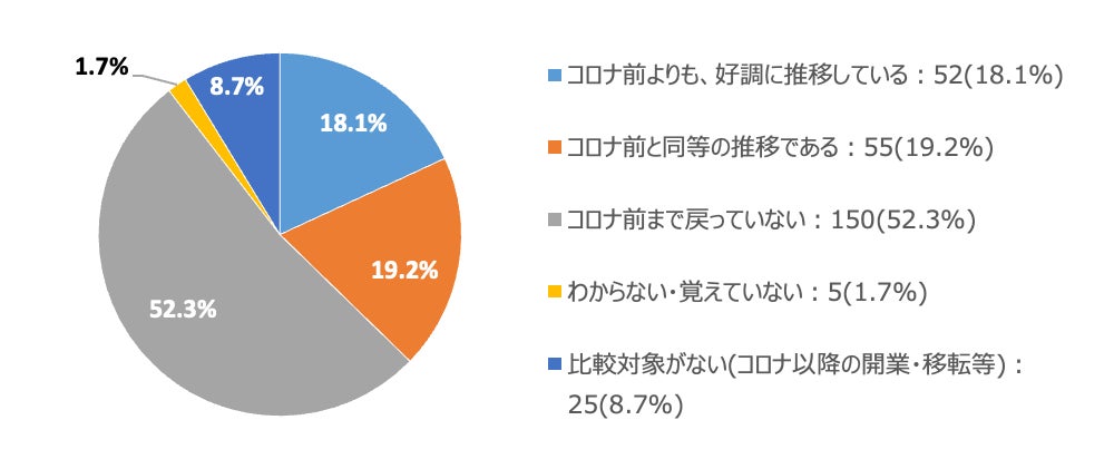 一方で、「コロナ前まで戻っていない」(52.3%)という回答も依然としてあることがわかります。