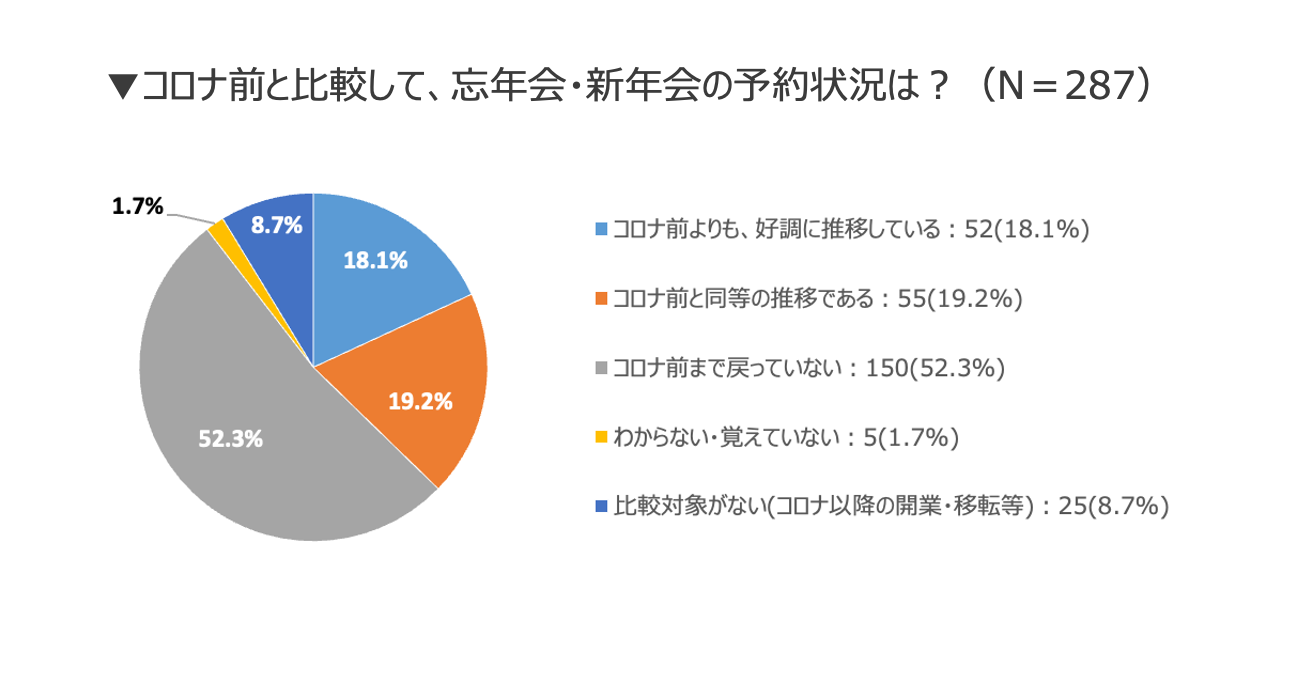 ▼昨年と比較して、忘年会・新年会の予約状況は?(N=287)