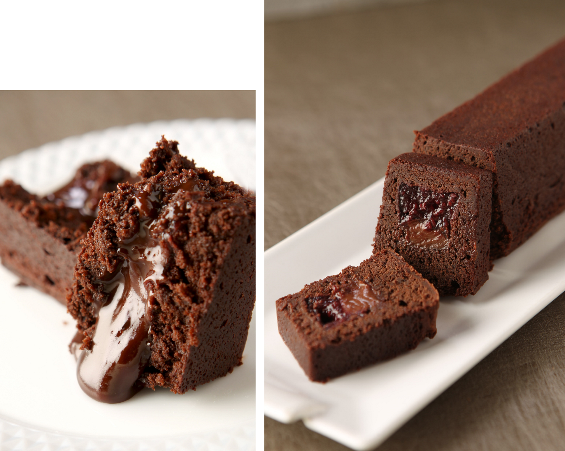 商品詳細:しっとりとした、ビターチョコレートの上品な味わいのパウンドケーキです。中は二層になっており、生チョコレート(ガナッシュ)と甘酸っぱいフランボワーズとの絶妙な組み合わせです。温めると中のチョコレートがとろけて、フォンダンショコラのようにもお楽しみいただけます。