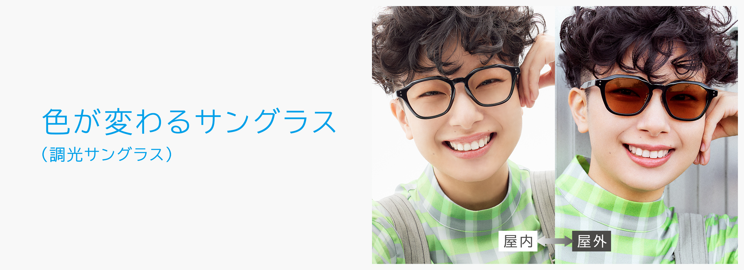 紫外線の量により、レンズの色の濃度が変化する2wayレンズです。室内ではメガネとして、屋外ではサングラスとして使えます。タウンユースから旅行、アウトドアシーンにも最適なサングラスです。