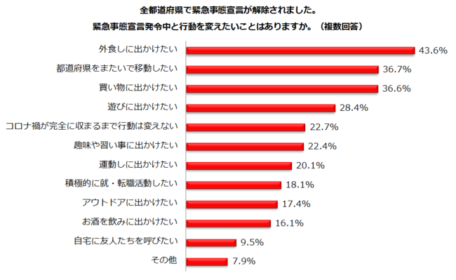 3.前回調査より:宣言発令中と行動を変えたいこと「外食に出たい」43.6%