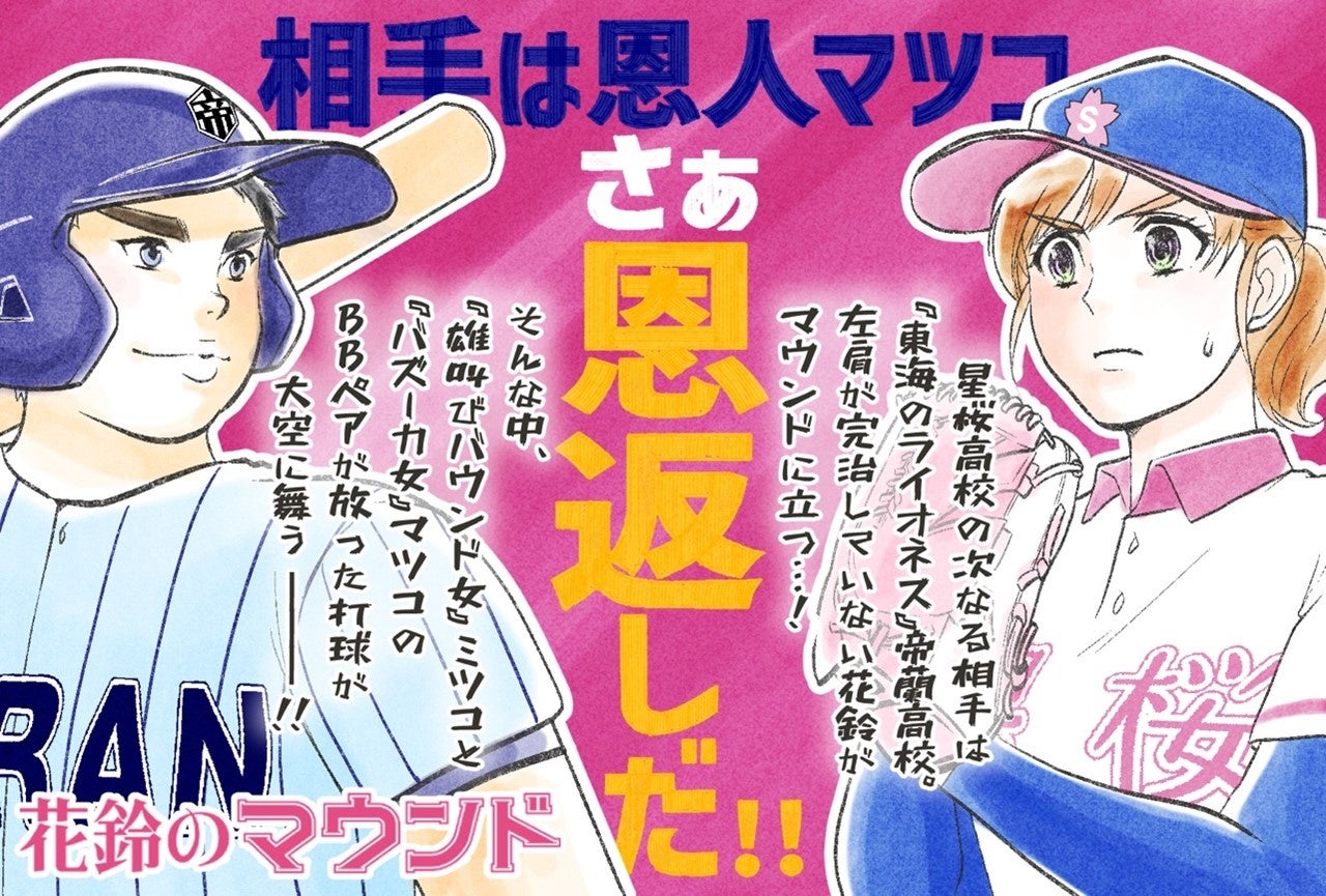 左肩が完治していない花鈴がマウンドに立つが、圧倒的な攻撃力を誇る『雄叫びバウンド女』ミツコと『バズーカ女』マツコの放つ打球が花鈴たちを襲う…!