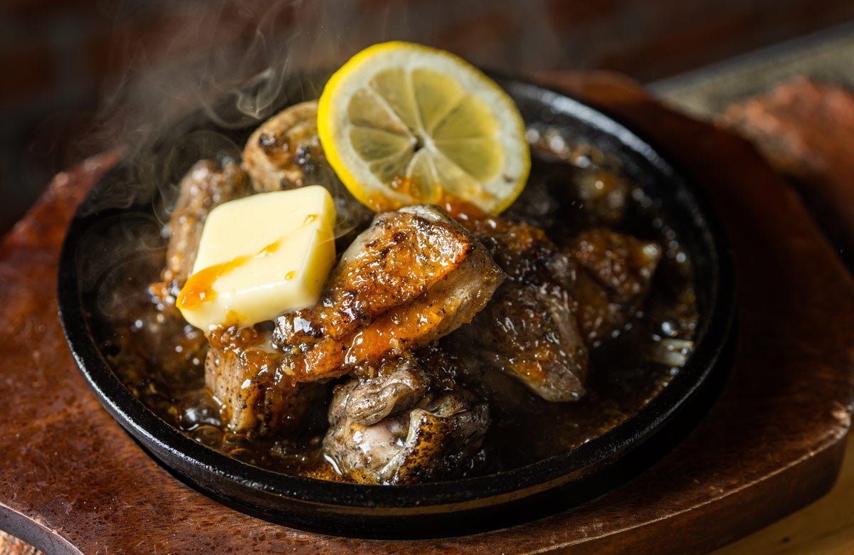 【新得地鶏の炭火焼】夏の味わいはレモンバターソース。爽やかなレモンの酸味、バターの香りとコクは新得地鶏のスッキリとした旨味がよく、夏の定番として毎年人気の味わいです。