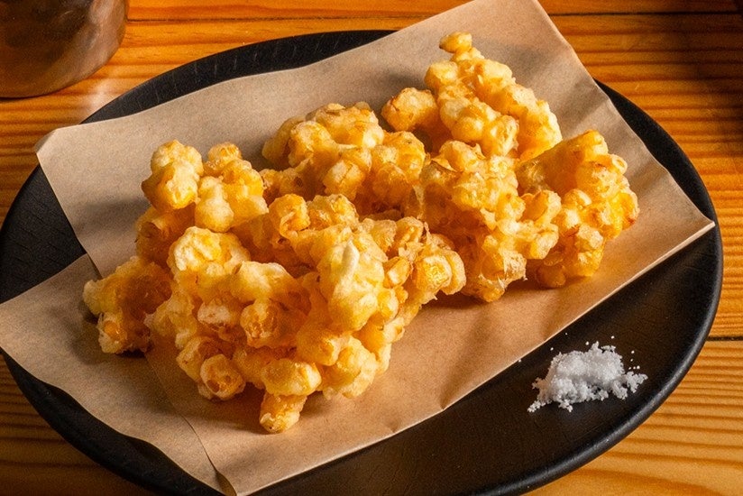 香ばしい香りが食欲をそそる「バター醤油の焼きもろこし(583円)」、生のとうもろこしを揚げているからこそのプチッとした食感、甘みを引き立てるオホーツクの塩とバランスがよい「とうもろこしのかき揚げ(682円)」をご用意しています。