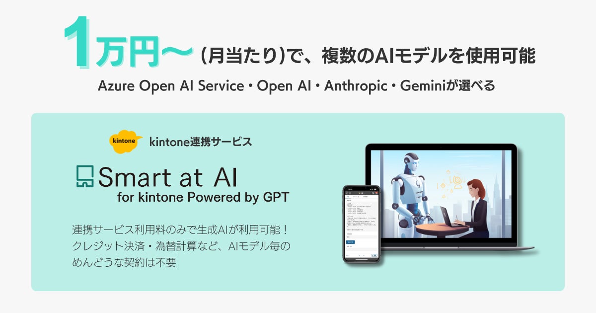 kintoneで生成AIが使える連携サービス「Smart at AI」、月当たり1万円から複数のAIモデルが利用可能に