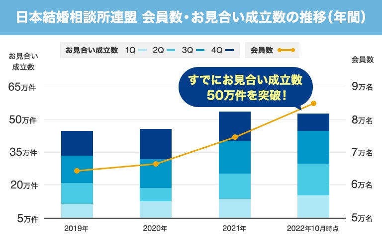 前年同期比118%増。2021年実績50万件を10ヶ月で超え、お見合いが活性化