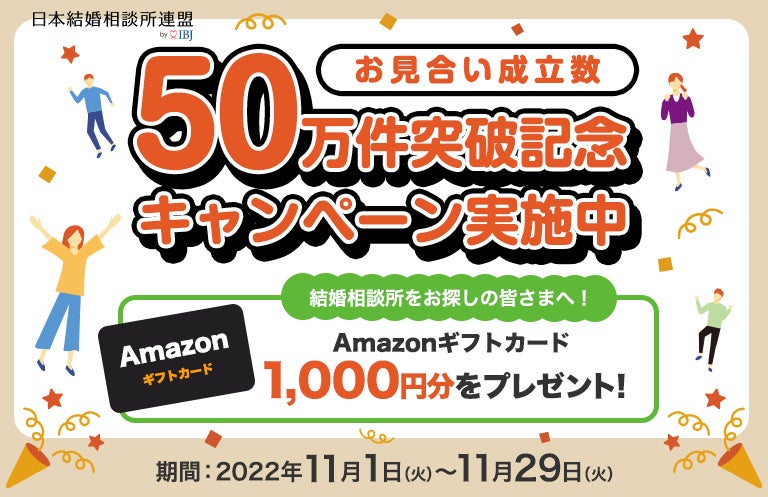 内容:日本結婚相談所連盟サイトから無料相談のご予約・無料相談を受けられた方へAmazonギフトカード1,000円分プレゼント