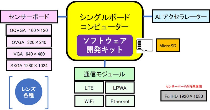 解像度QQVGA(160×120)、QVGA(320×240)、VGA(640×480)、SXGA(1280×1024)と、PCでカメラ用SDKをサポートします。