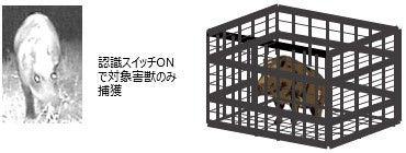 識別スイッチⓇによる害獣捕獲率の向上(捕獲対象害獣のみ認識し、檻を閉じる)
