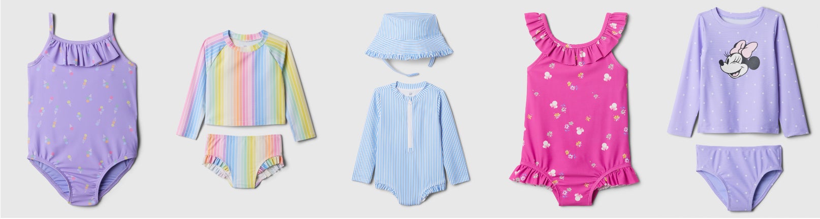 Gapらしい遊び心あるデザインやUVカット機能、ラッシュガードや帽子付きセットなどバリエーション豊かなラインナップに注目
