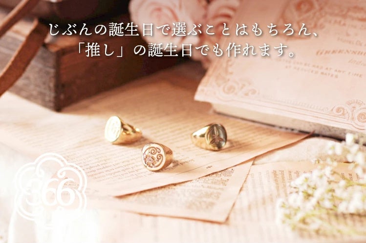 今回あらたに登場した「366日の花指輪」は、ハンコは中世ヨーロッパではシグネットリングと呼ばれる指輪型であったことから、まさに“指輪ハンコ”と言えるシグネットリングを現代風にアレンジした「ハンコのような指輪」があったら面白いのではないかという想いから企画したもの。