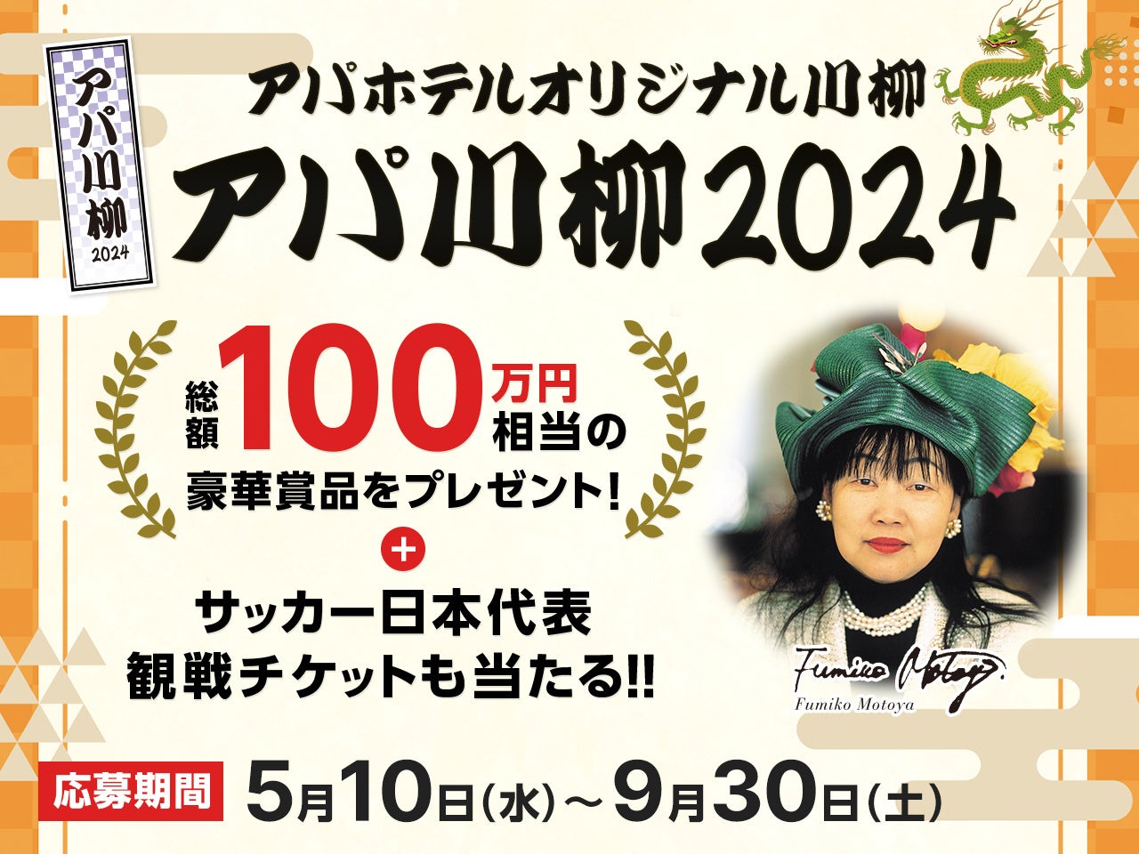『アパ川柳2024』一般応募開始 豪華賞品総額100万円相当とサッカー日本代表観戦ペアチケットプレゼント!