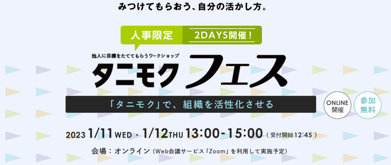 組織の活性化をテーマとした 人事限定イベント「タニモク」フェス開催【2023年1月11日・12日オンライン開催】