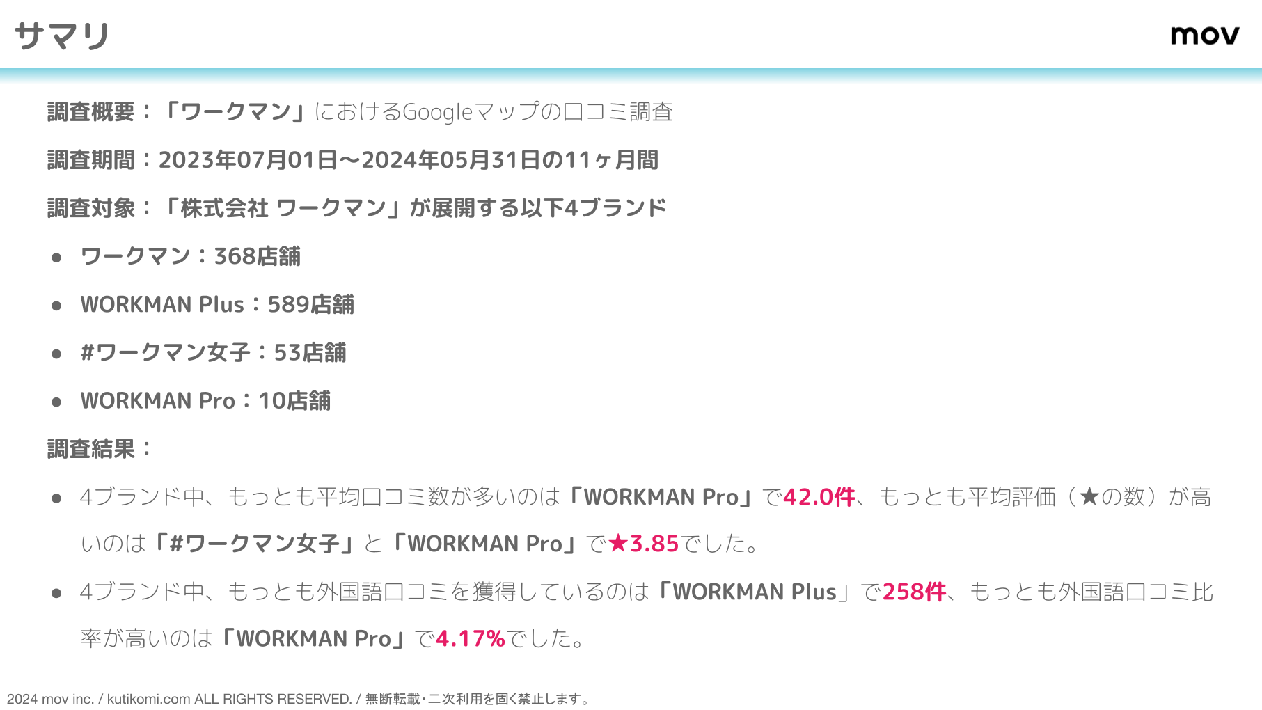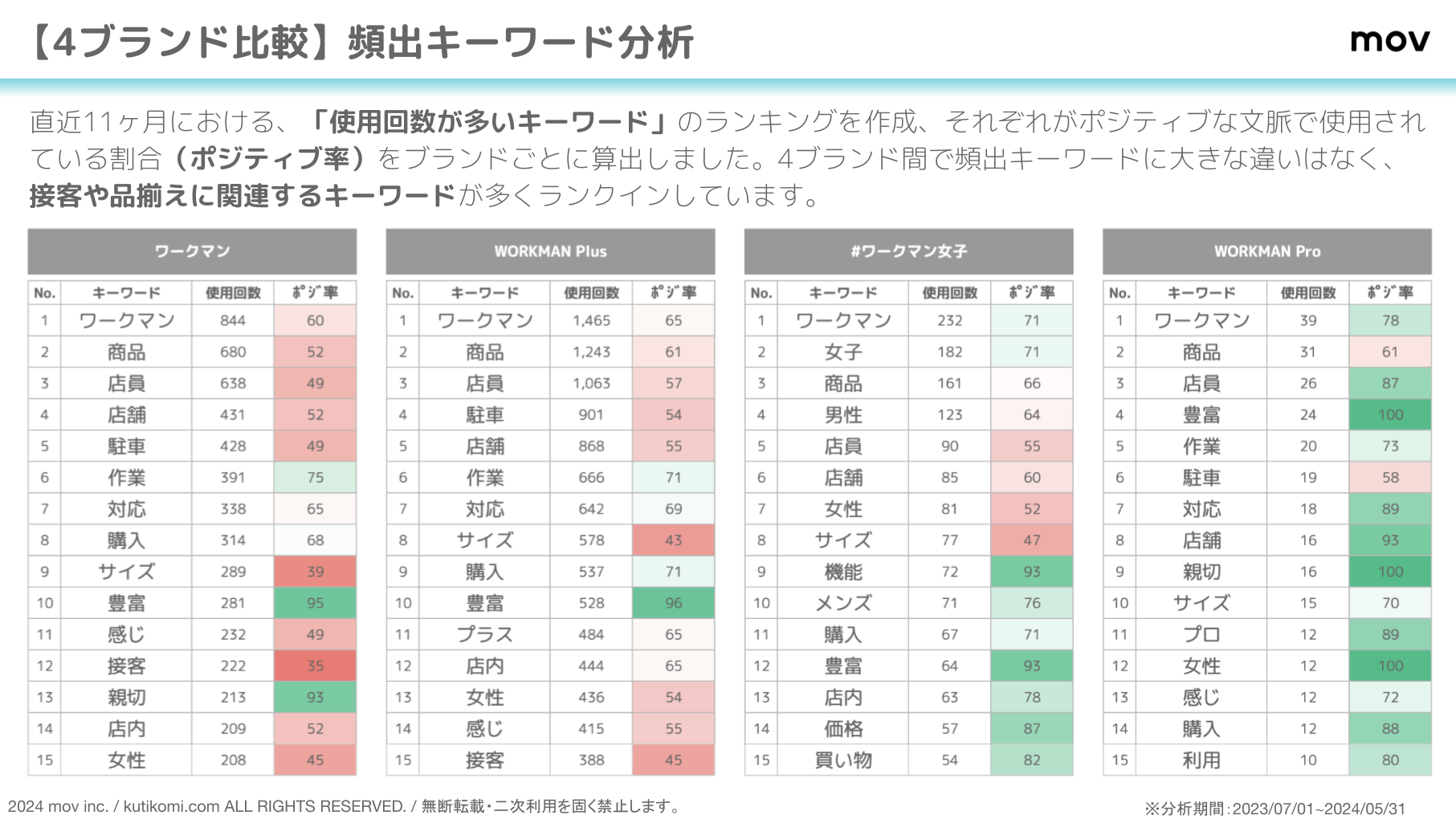 本調査は、「株式会社 ワークマン」が展開する4ブランドに寄せられた30,212件の口コミを対象に行いました。