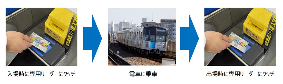クレジットカードやデビットカード等のタッチ決済による乗車では、ICカードへのチャージやきっぷの購入が不要となり、お客様がお持ちのタッチ決済対応のカード(クレジット・デビット・プリペイド)や同カードが設定された スマートフォン等を、自動改札機に新たに設置する専用リーダーにタッチすることで改札を通過できます。