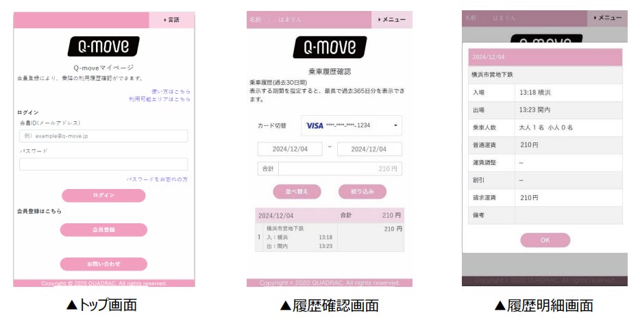 QUADRAC株式会社のQ-moveサイトにアクセスし、「マイページ」の会員登録手続きを完了すると 確認が可能です。