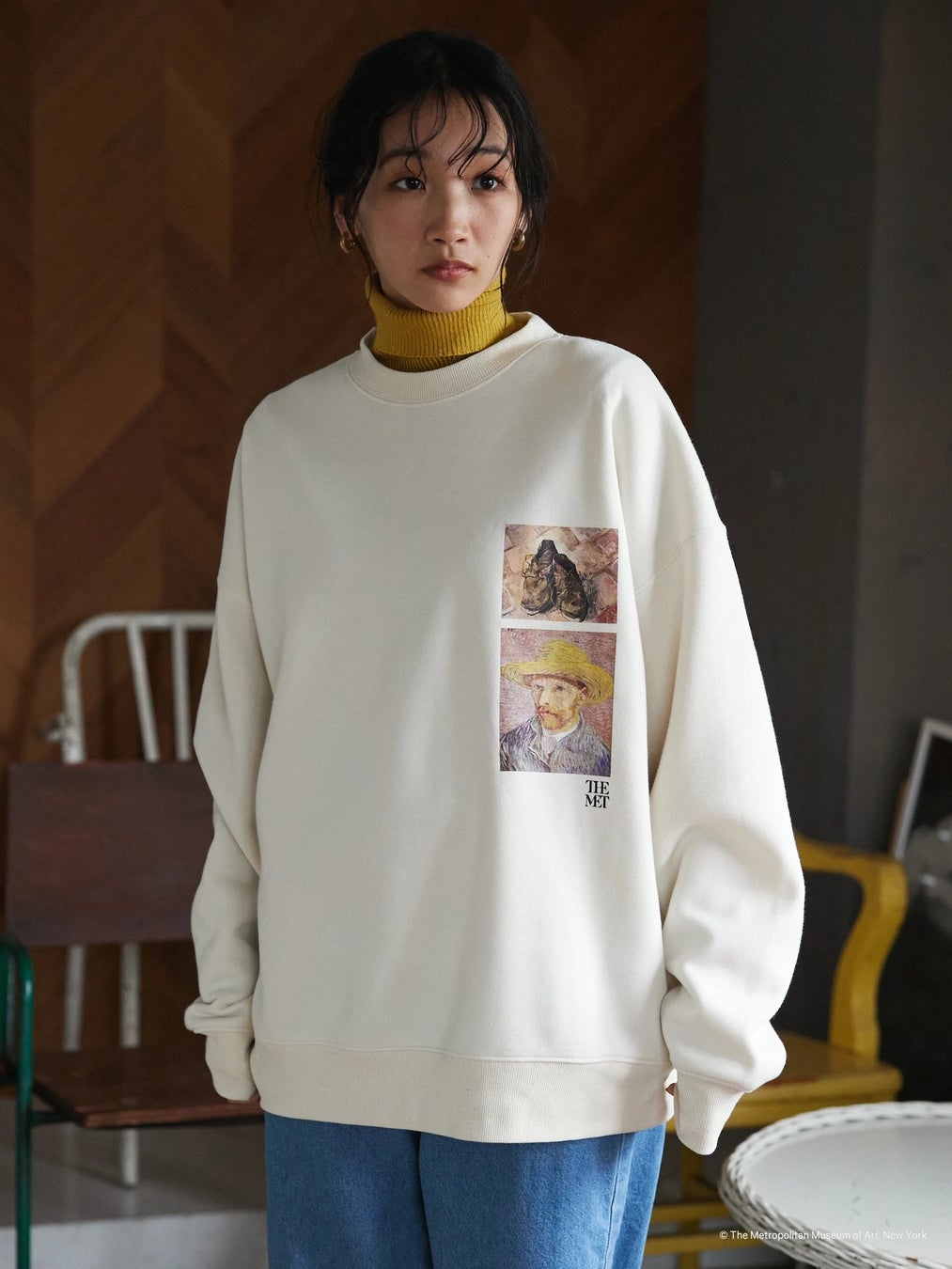 アイテムは作品をプリントで施した、クルースウェットとパーカーの全4型を展開。モネは、『睡蓮の池に架かる橋』、『サンタドレスのテラス』、『ラ・グルヌイエール』、ゴッホは『麦わら帽子をかぶった自画像』、『靴』、『糸杉のある麦畑』など代表的なアートを使用しました。また、「メトロポリタン美術館」の略称、“THE MET”のロゴもポイントです。