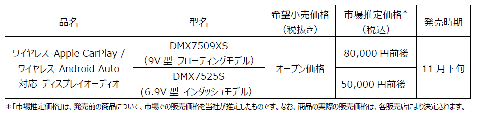 ディスプレイオーディオ「DMX7509XS」「DMX7525S」を発売