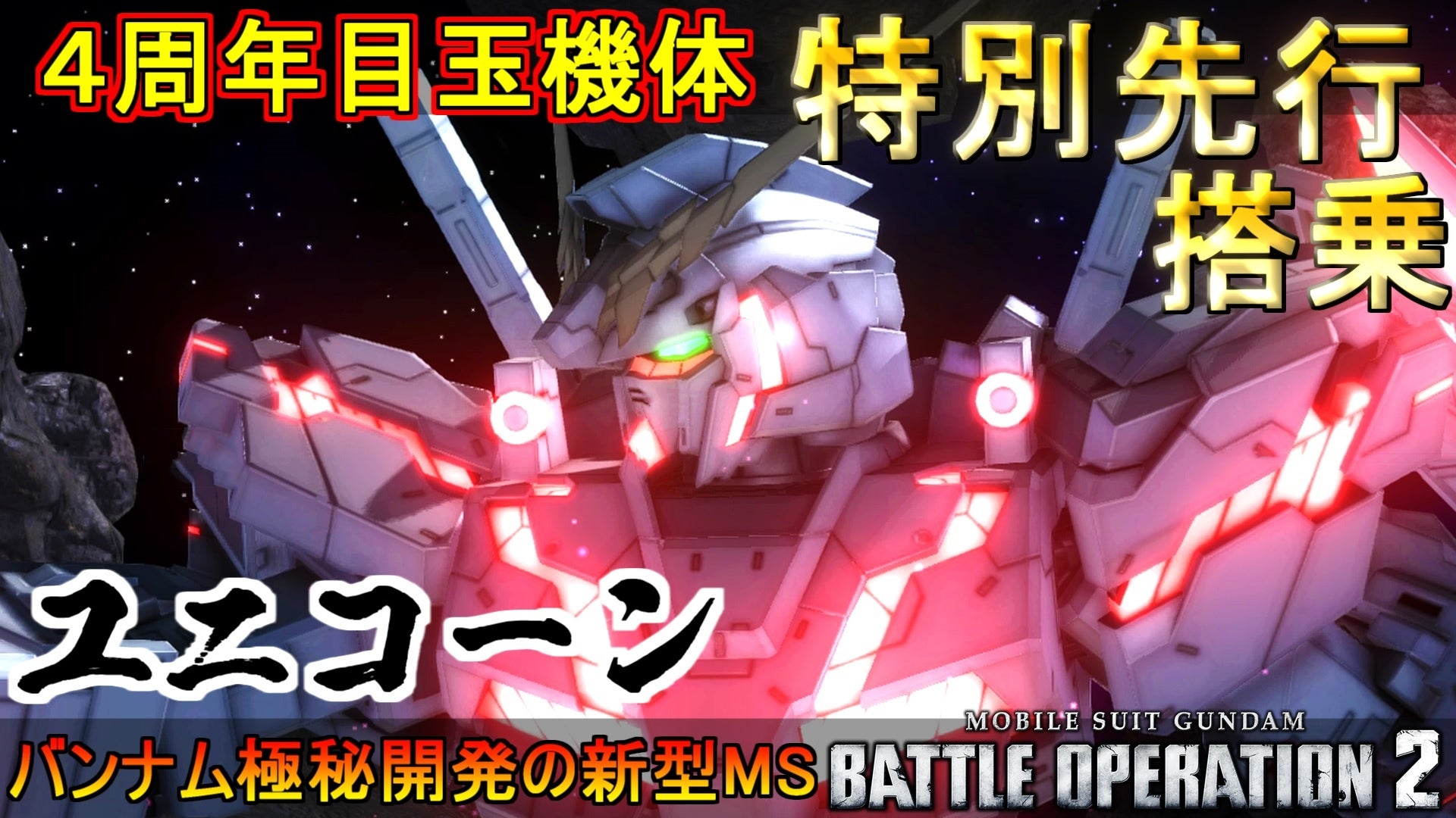 また、同日実装予定の新機体「★★★★ユニコーンガンダム」の新機体紹介PVや、4周年の新オープニングムービーをキャンペーン開始に先駆けて公開中です。