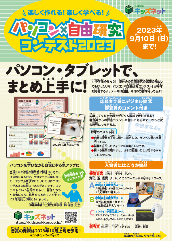 ●「パソコン×自由研究コンテスト2023」(https://kids.gakken.co.jp/jiyuu/contest2023/)