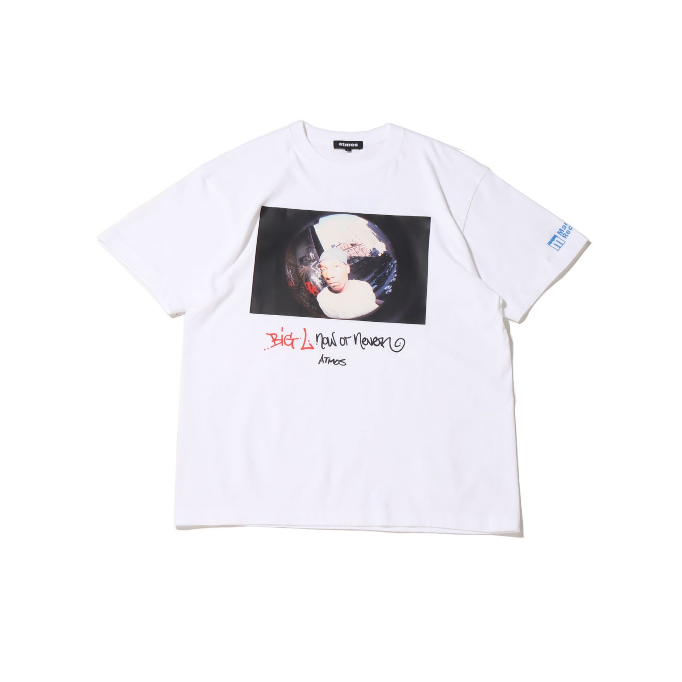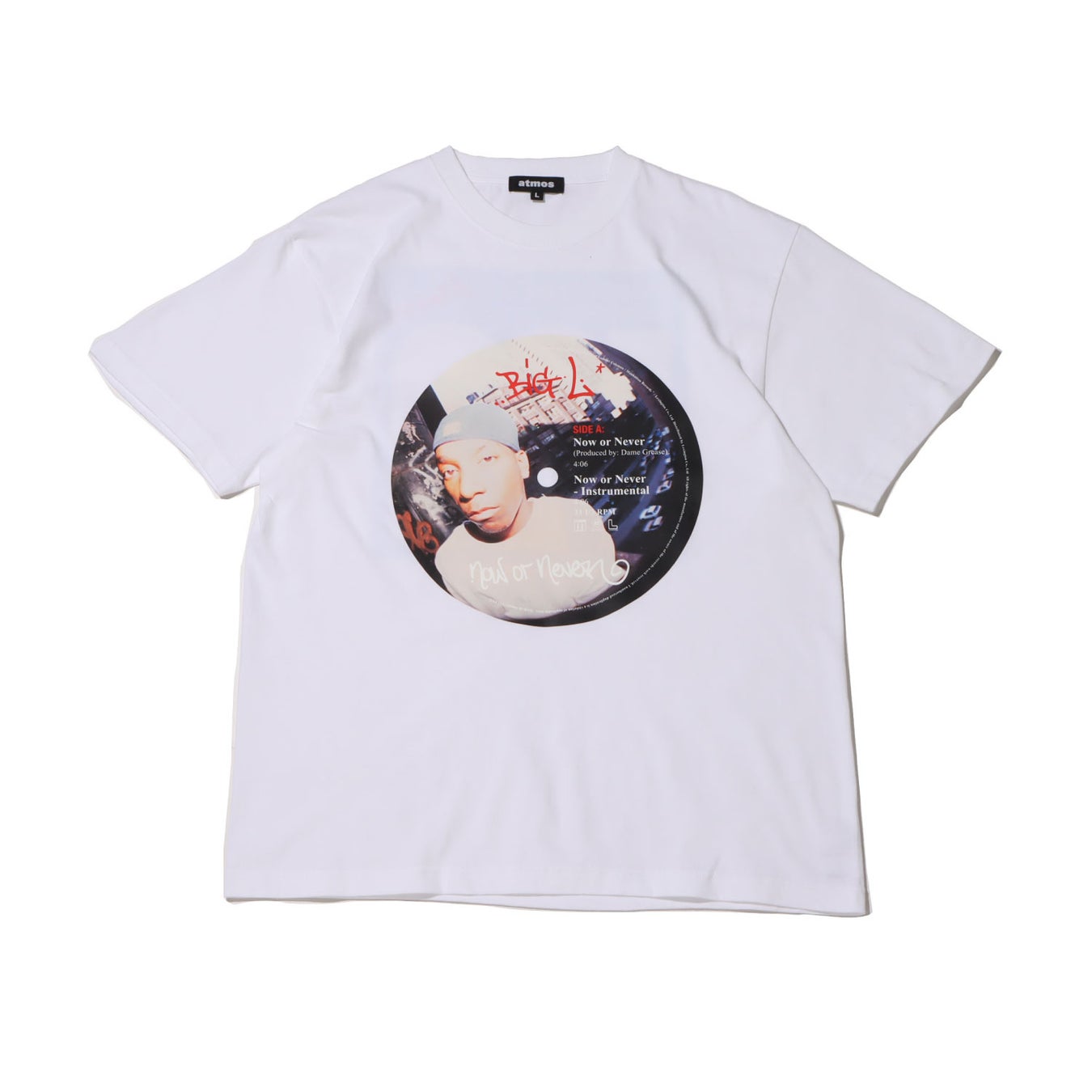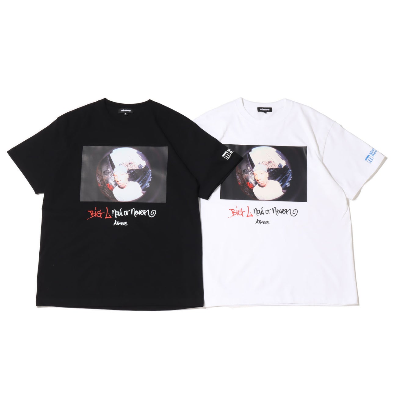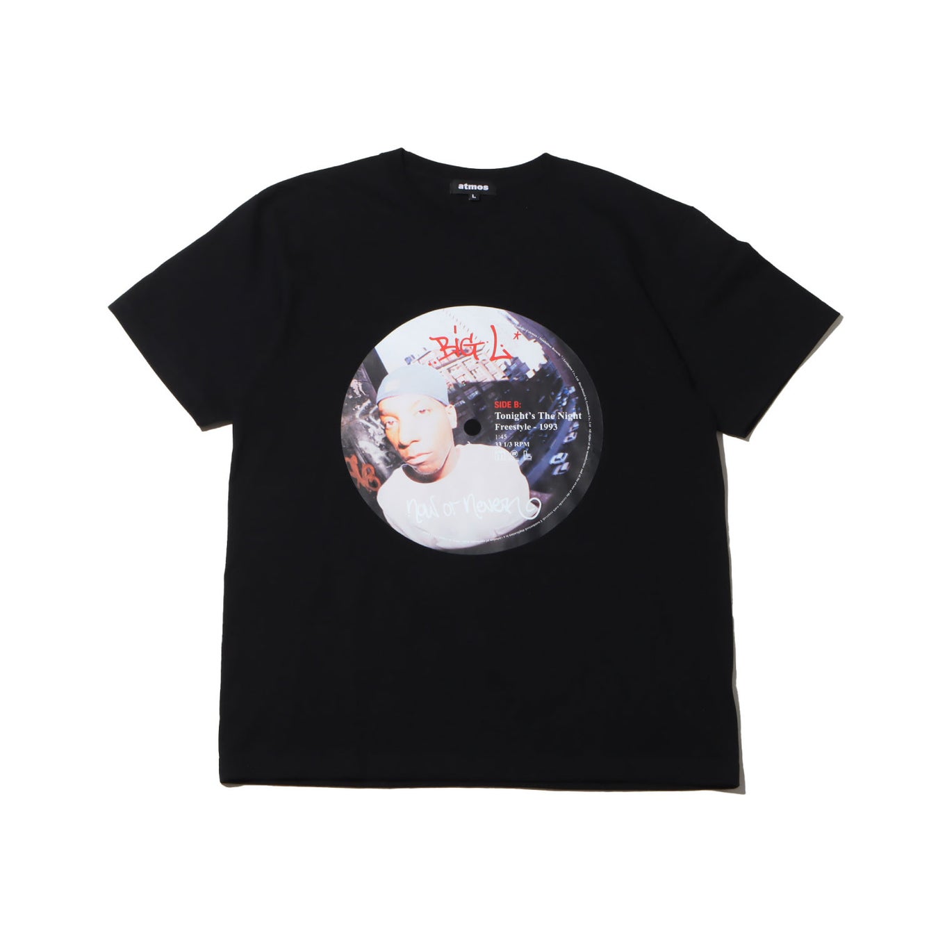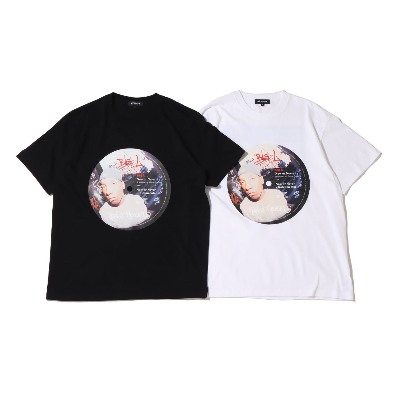 今作は、リリースする“Now or Never”のジャケット、アートワークデザインに用いられた、Big L本人のフィッシュアイのフォトとテキストデザインを落とし込んだ「Photo T-Shirts」、レコードディスクのラベルデザインをフロントに落とし込みながら、今回特別に作成した「Manhattan Records × atmos」のボックスロゴをバックに配した「Vinyl T-Shirts」の2デザイン。どちらもブラック、ホワイトの2色展開となっております。