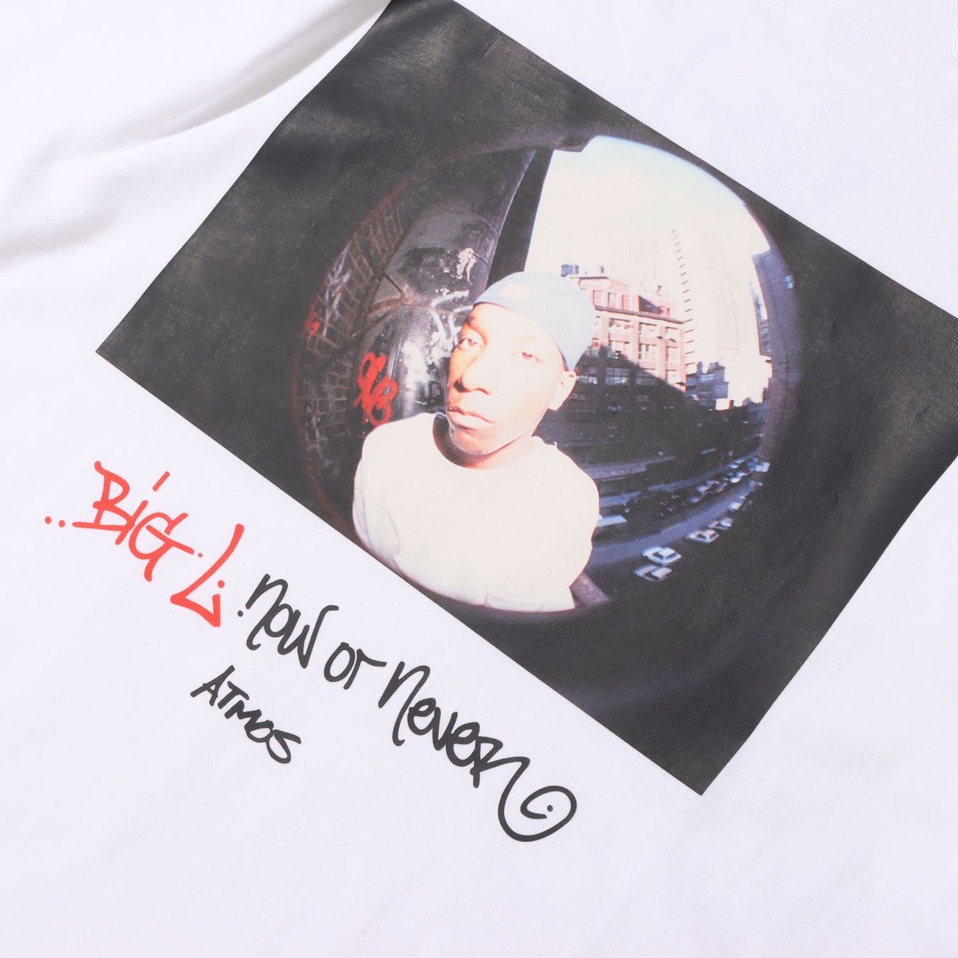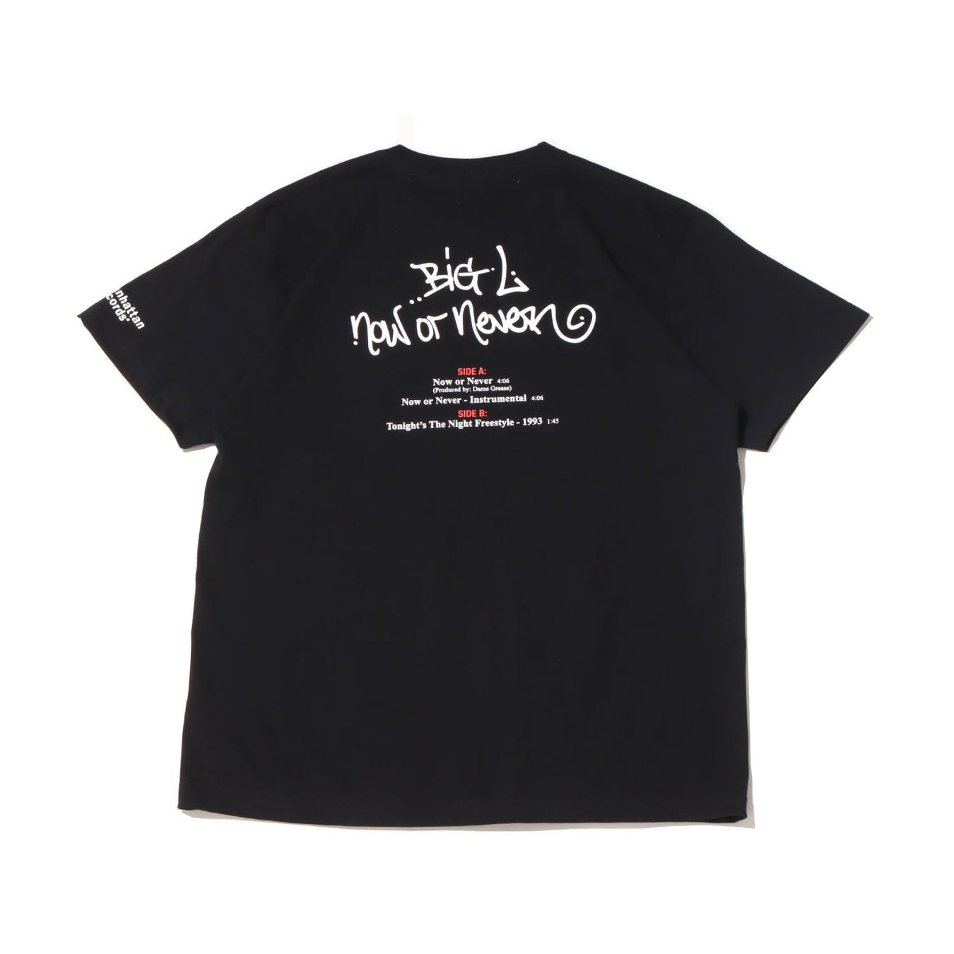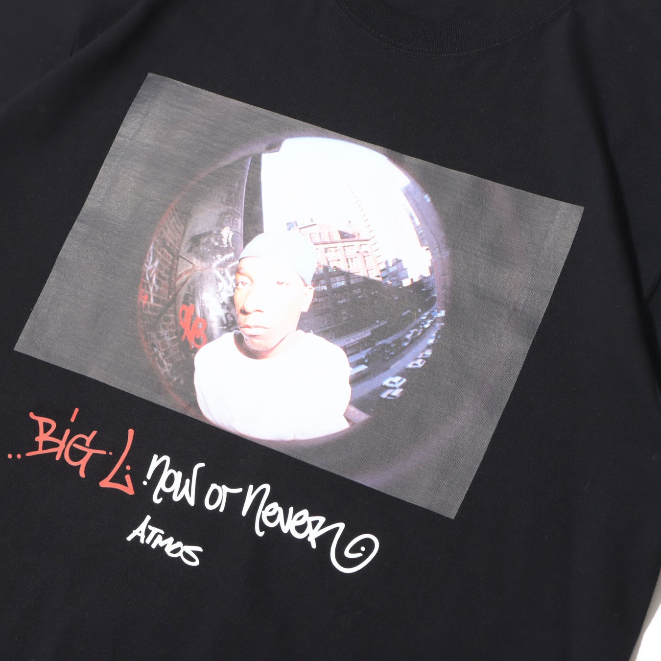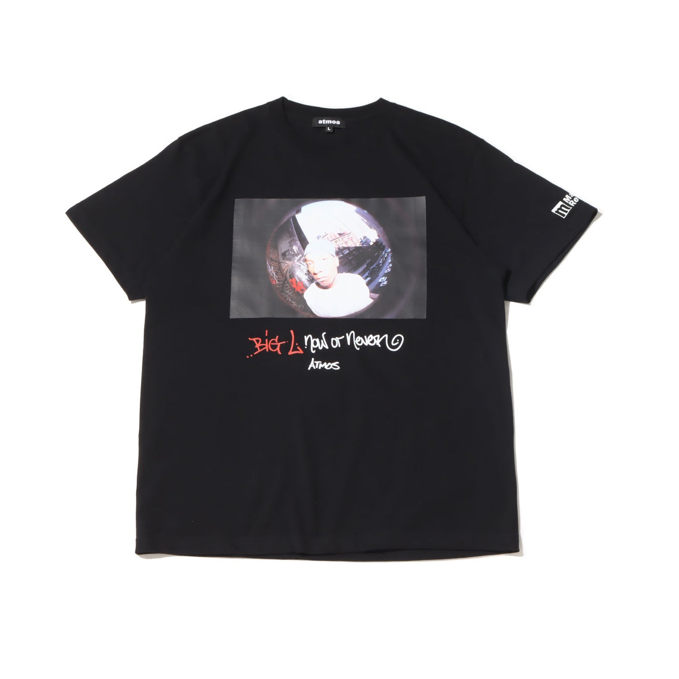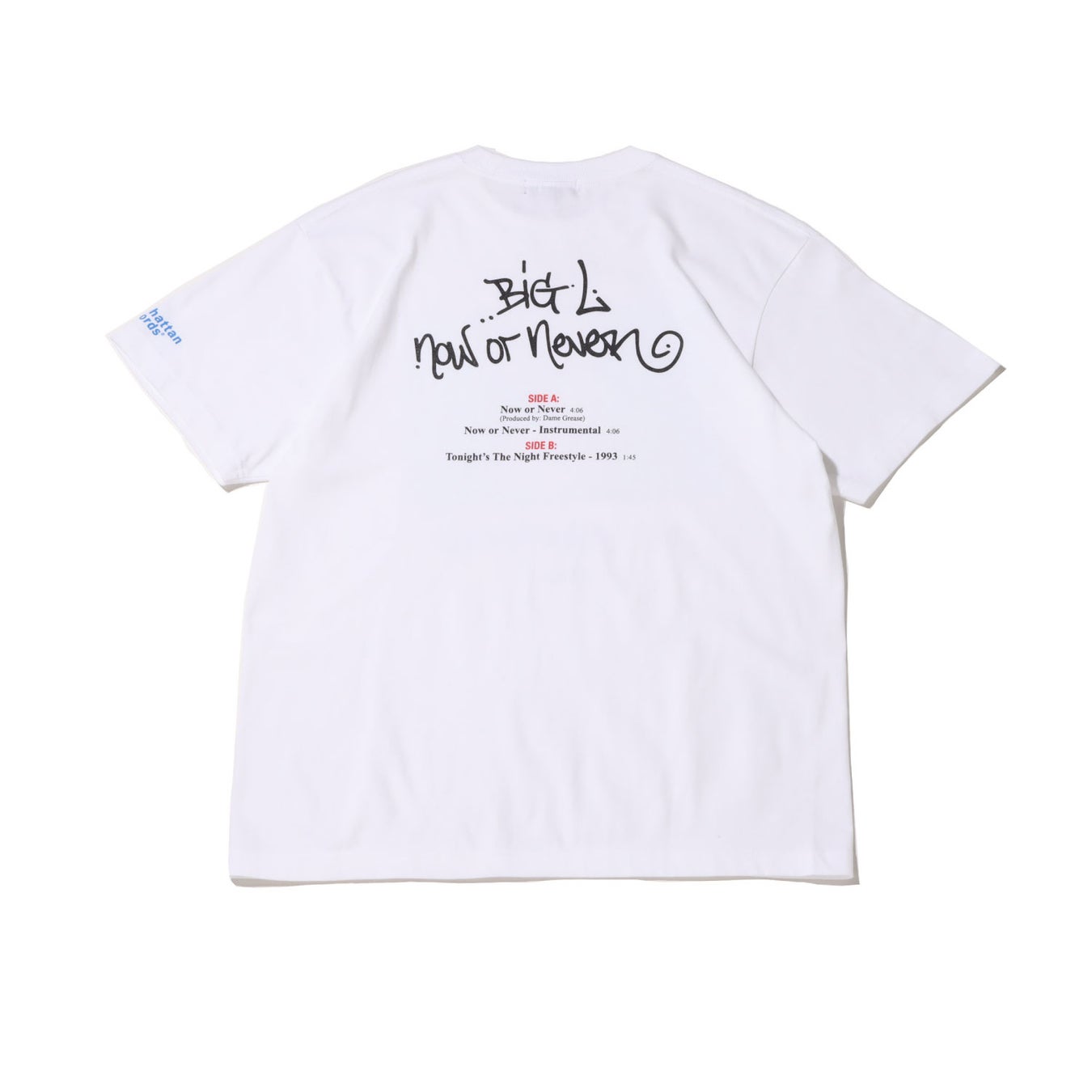 今作は、リリースする“Now or Never”のジャケット、アートワークデザインに用いられた、Big L本人のフィッシュアイのフォトとテキストデザインを落とし込んだ「Photo T-Shirts」、レコードディスクのラベルデザインをフロントに落とし込みながら、今回特別に作成した「Manhattan Records × atmos」のボックスロゴをバックに配した「Vinyl T-Shirts」の2デザイン。どちらもブラック、ホワイトの2色展開となっております。
