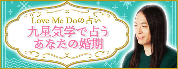 有名芸能人の結婚やスキャンダルから自然災害、政治・経済まで様々なニュースを的中させる『予言的中の占い師』Love Me Do。現在、月額公式サイト『ラブちゃん占い』にて、『婚期占い|あなたの婚期は?九星気学で結婚時期・入籍日を鑑定』を無料公開中です。ぜひこの機会にご利用ください。