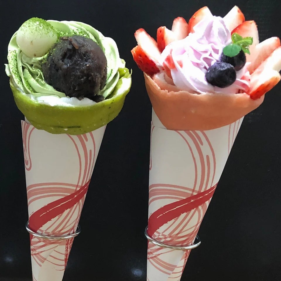 もちもちカラフルな生地のおしゃれなクレープです。お食事系クレープや、その他スイーツも取り揃えております。