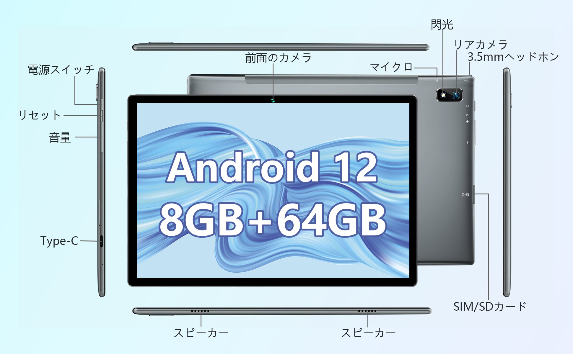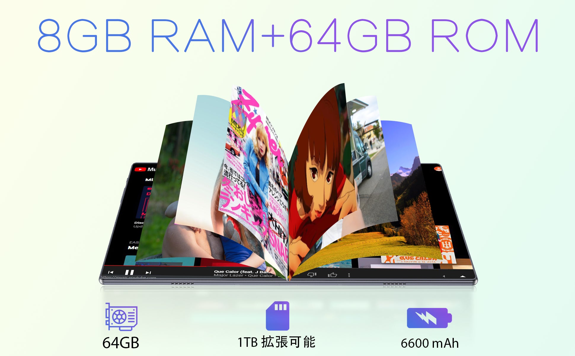 I10 Proは大容量8GB(4GB+4GB拡張)RAM&大容量64GBのROMで、写真、ビデオ、音楽を保存するのに十分なスペースも備えています。さらに、MicroSDカードを挿入すれば1TB容量を拡張可能です。これにより、高いパフォーマンスと高い電力効率を両立させています。Android 12システム、Android 12を搭載しており、この迅速で強力なAndroidタブレットPCには、驚異的なパフォーマンスとスタイリッシュなデザインが組み合わされています。
