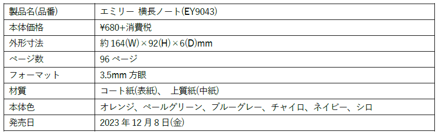 『EMILy(エミリー)』シリーズは、便利な機能とカラーが特長のライフスタイルグッズです。2021年1月の第1弾発売以降、ビジネスパーソンを中心にご好評をいただいています。今回はシリーズ第3弾として、昨今の働き方に合わせ、出社とテレワークのハイブリットワークに役立つ機能を詰め込んだ「横長ノート」「ふせん」「ワークポーチ」の3製品を発売します。カラーは差し色となるオレンジやペールグリーンのほか、ネイビーやシロなどの落ち着いたカラーを追加し、より使いやすくトレンドをおさえたデザインへリニューアルしました。