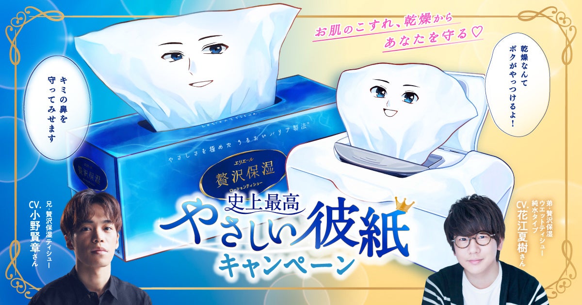 ーボクたちはキミの涙や鼻を拭うだけじゃなく、心のモヤモヤも拭いたいんだー 声優・小野賢章さん&花江夏樹さんが兄弟役で“やさしいセリフ”をささやく!「贅沢保湿 史上最高やさしい彼紙キャンペーン」実施